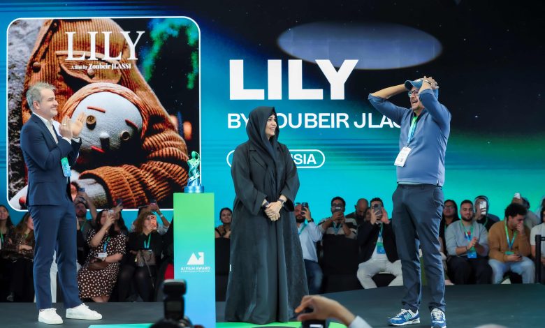 وفيلم “ليلي” الفائز بجائزة الأفلام المولدة بالذكاء الاصطناعي وقيمتها مليون دولار، للمخرج  زبير الجلاصي، من تونس، يتحدث عن مدينة غارقة بالمطر، تطارد دمية مرتبطة بضحية حادث دهس، أمين أرشيف مثقل بالذنب، ما يدفعه إلى الاعتراف والسعي للخلاص، مؤكدًا أن حتى الأشياء الصامتة تحمل الحقيقة والبعد الأخلاقي.